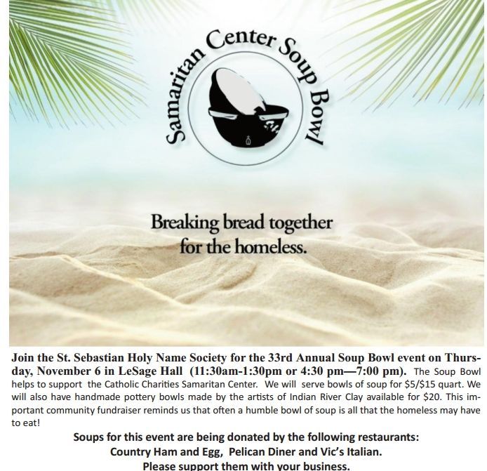 The parish is in need of ushers for the 7:30am and 11:30am Masses. If you attend either of these Masses and would like to help, please call Sandy in the parish office at 772-589-5790.